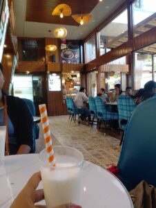 At Temptation Café, design is not about grandeur; it’s about harmony. Even the smallest details — the grain of the wood, the curve of a chair, the way the light hits the floor — seem to have been placed with intention. The staff moves with quiet precision, their smiles genuine but unforced, adding to the café’s atmosphere of understated hospitality. As the evening light dims and the golden lamps take over, the space transforms once again. The reflections in the glass windows mirror the candlelight flickers, giving the illusion of stars indoors. There’s a hush that settles — not silence, but serenity. Couples lean closer in conversation, friends share slow laughter, and the occasional clink of cutlery feels almost musical. This is not just a café; it’s an environment that invites you to feel, not just to sit.